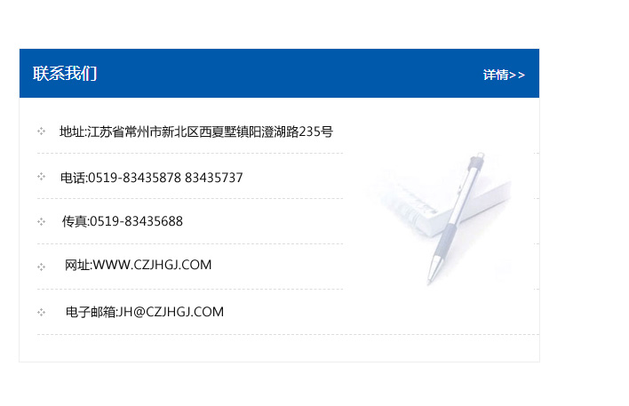 傳真:0519-83435688    郵編:213135    網址:WWW.czjhgj_com.icoce.net    電子郵箱:JH@czjhgj_com.icoce.net